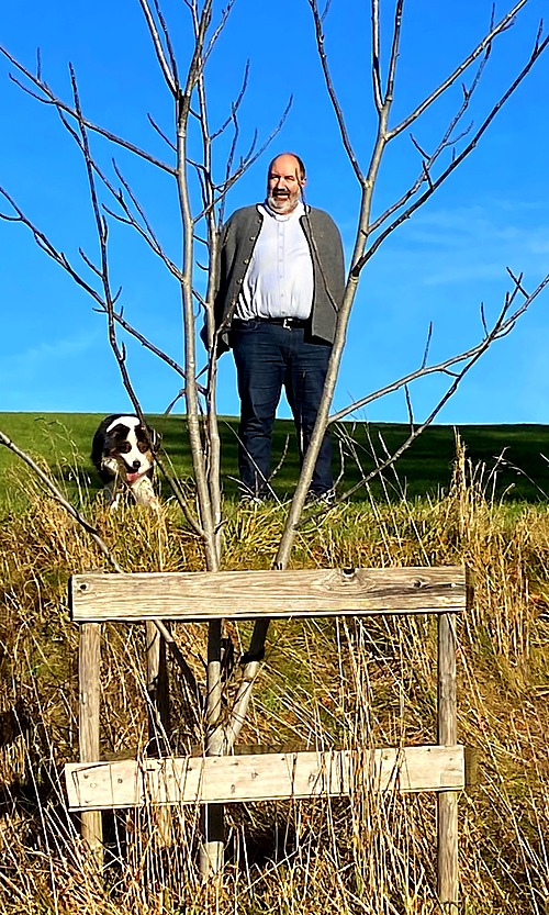 Gesagt getan, nach monatelanger Arbeit in Kooperation mit dem LBV ist nun ein in die Höhe des Hügels wachsendes Biotop mit einem sechs Meter tiefen Streifen als Blühsaum, je zur Hälfte mit Blumensamen und Gräsern bestückt, entstanden. Dem folgt eine 18 Meter tiefe Streuobstwiese, ein zwölf Meter tiefer Acker für das heimische Wild und als Abschluss ein sechs Meter tiefer Streifen mit 54 Stauden und Sträuchern, die als Unterschlupf für Vögel und sonstiges Getier dienen sollen. Auf der Streuobstwiese aber wurden 15 verschiedene Obstbäume, darunter Äpfel, Birnen, Kirschen und Quitten, ausschließlich alter Sorte, angepflanzt. Und sogar ein Walnussbaum hat ein Plätzchen gefunden (Bild links).