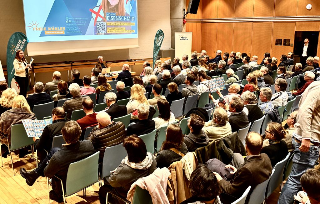 Starnberg – Großes Interesse an einem der drängendsten Themen im Landkreis: Mehr als hundert Gäste folgten am Dienstagabend der Einladung der Freien Wähler Kreisvereinigung Starnberg zur Veranstaltung „Bau-Turbo – Mehr Wohnungsbau im Landkreis Starnberg“ in die Schlossberghalle. Der Saal war bis auf den letzten Platz gefüllt.