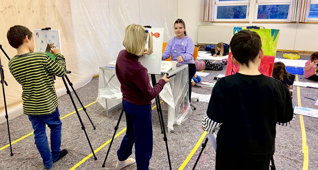 Am Sonntag fand bereits ein weiterer Spielenachmittag unter dem Motto „Weihnachtswerkstatt und Farbenzauber“ statt, an dem 30 Kinder angemeldet waren. Auf dem Programm standen unter anderem Malen auf Leinwänden, Basteln und das Singen von Weihnachtsliedern. Auch dieses Mal mussten sich die Kinder von ihren Eltern verabschieden, Tränen gab es keine. Vielmehr genossen sie es, sich untereinander anzuspornen, Kritik zu ihren künstlerischen Werken einzuholen oder aber auch, eher schüchterne Kinder zu motivieren, mitzumachen.