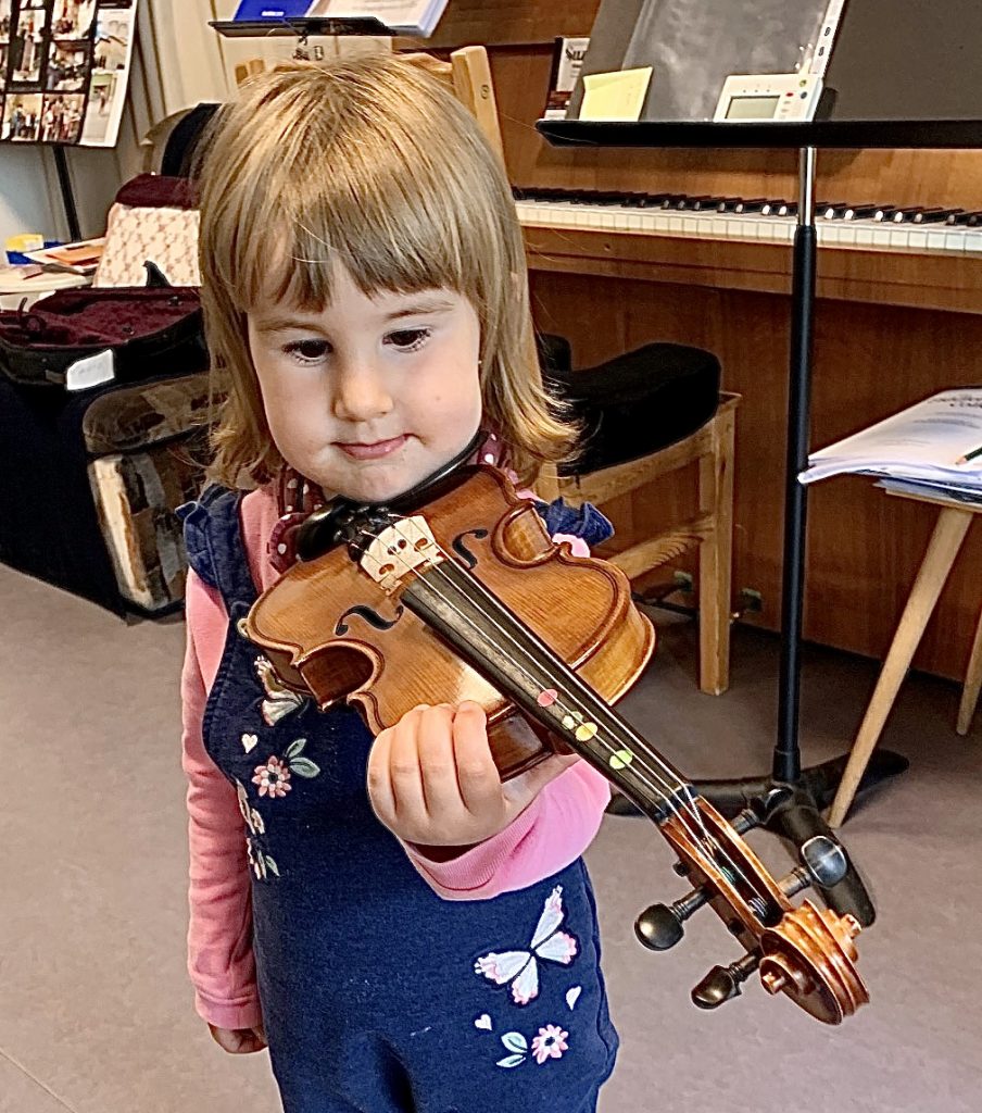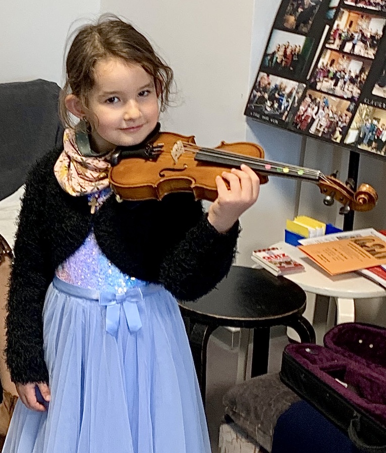 Mit fünf Jahren startete Varvara mit dem Unterricht. „Am Anfang lernt man den Strich ohne die rechte Hand und ohne einen Bogen. Das erste Lied, dass ich den Kindern so rhythmisch beibrachte, war „Morgen, morgen, nur nicht heute, sagen alle faulen Leute“, ergänzt Julieta. Der gute Draht zueinander kommt unter anderem durch ihre rumänische Vergangenheit. Varvara besucht heute die 3. Klasse in der James-Krüss-Grundschule und spricht gleichermaßen gut rumänisch wie auch deutsch. Ach ja, nach ihren beruflichen Zielen gefragt, sagte Varvara: „Sängerin, weil mich mein Papa Valentin, der einen Kinderchor leitet, bereits in Gesang unterrichtet. Wenn das nicht klappt, werde ich Geigerin in einem Orchester.“