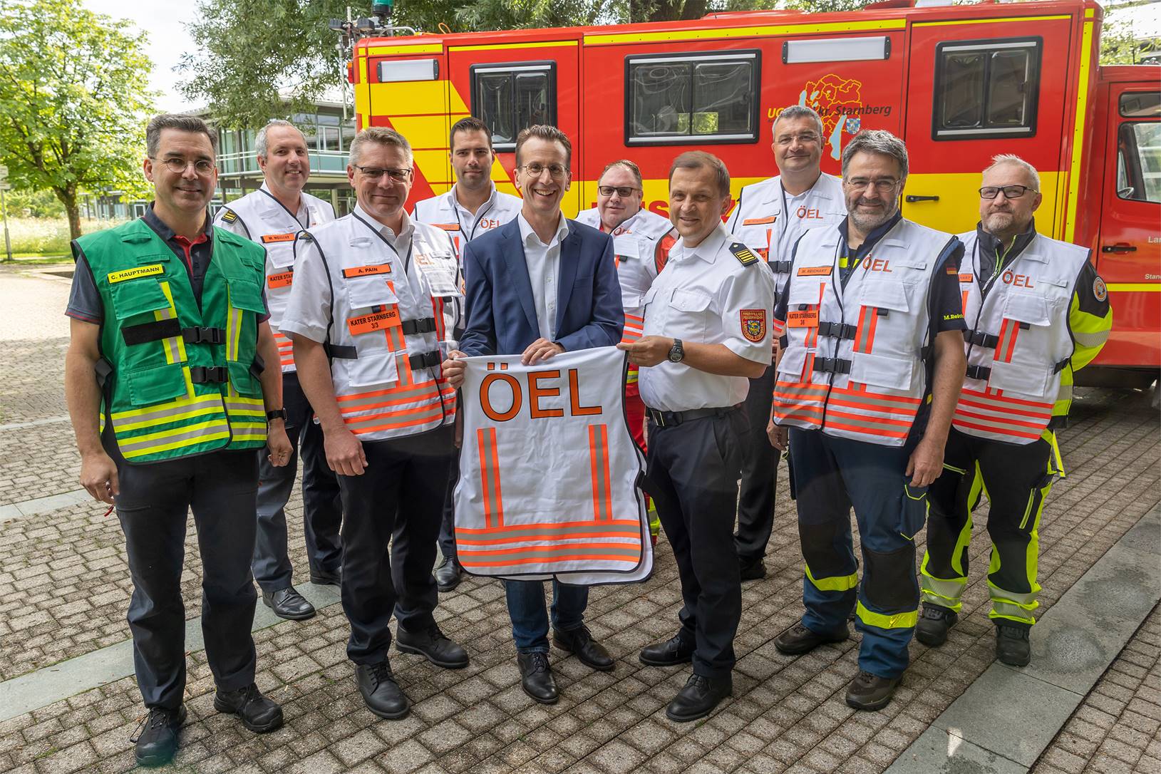 Helmut Schweickart, Maximilian Wastian, Andreas Pain, Michael Weigert, Klaus Ringhoff (alle Kreisbrandinspektion), Markus Reichart (THW), Walter Kohlenz (DLRG) und Roland Schwankhart (BRK).